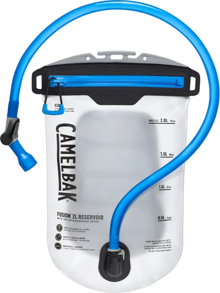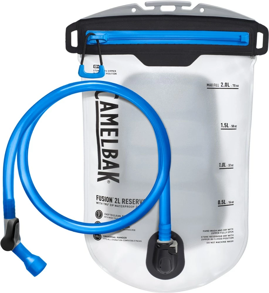Easy to fill, pack and clean, the CamelBak Fusion 2 L reservoir will keep you hydrated on the trails, no matter how you choose to tackle them. Its easy-to-use on/off lever helps prevent leaks.