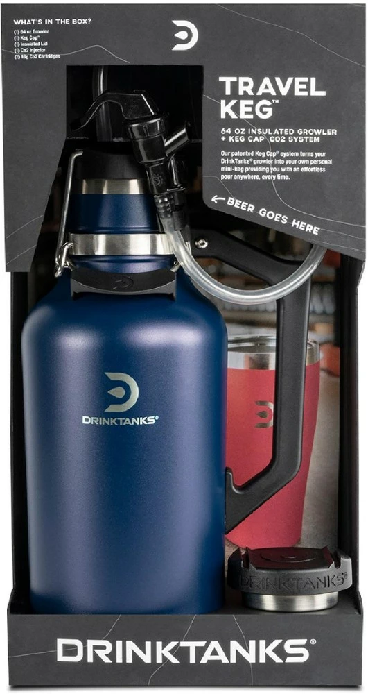 Your own personal mini-keg, the DrinkTanks Travel Keg kit combines a 64 fl. oz. DrinkTanks growler and a Keg Cap accessory kit to maintain carbonation and provide a perfect pour anywhere, anytime.