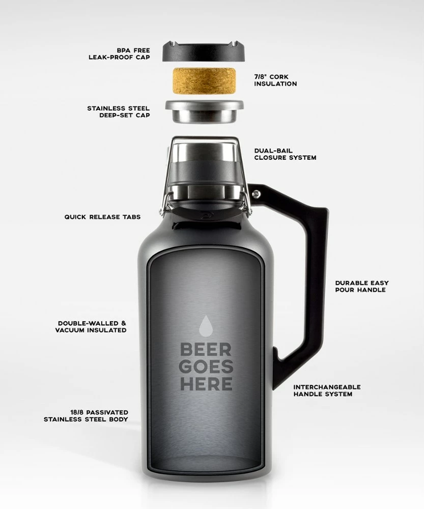 - Made from 18/8 premium stainless steel, the growler is durable, leakproof and dishwasher safe