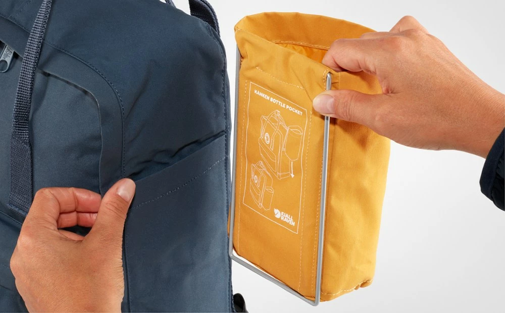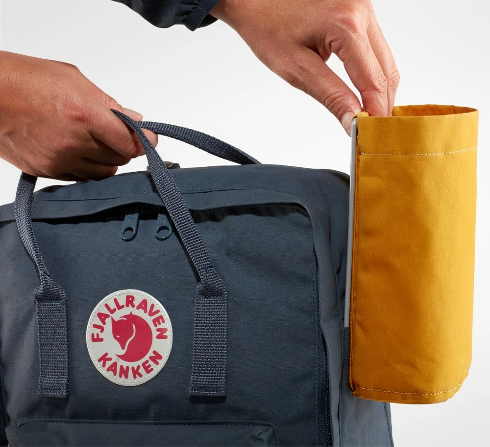 Extend the possibilities of your Fjallraven Kanken backpack (not included) with this practical bottle pocket—a great accessory when you need a little space in your pack.