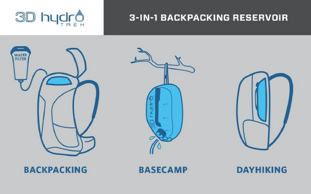 Designed for on-trail sipping and basecamp use, the Gregory 3D Hydro Trek hydration reservoir comes with a push-button pour spout to make filling pots and bottles and washing hands at camp simple.