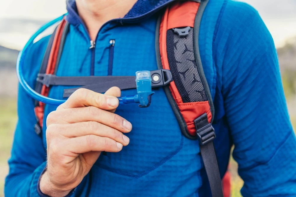 - Push-button on/off bite valve allows for confident, leak-free storage while traveling to and from the trail (magnet accessory included)