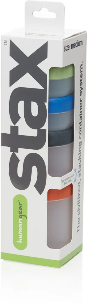 Food-safe and watertight, the 4-piece set of medium humangear Stax Interlocking Containers makes snack rationing and food storage easy for camping and outdoor adventures.