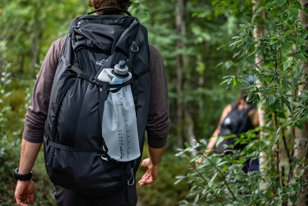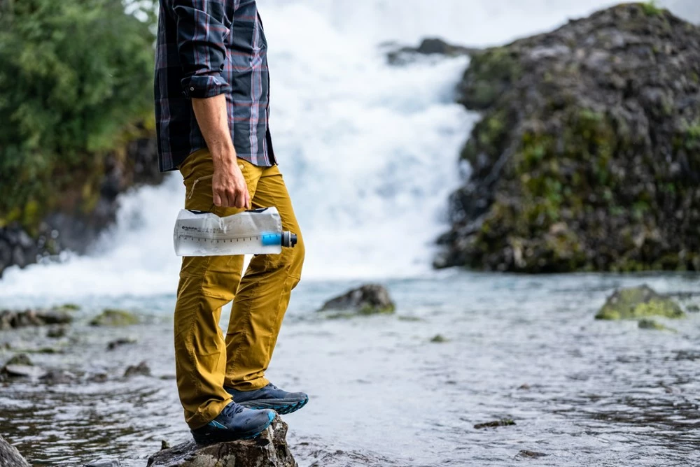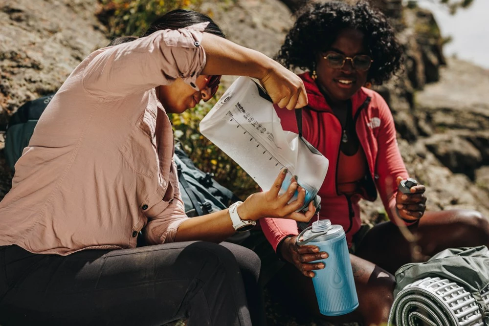A go-to ultralight water filtration solution, the 3-liter HydraPak Seeker + Filter is designed for easy water collection and storage, and it can be rolled or squeezed to filter into other containers.