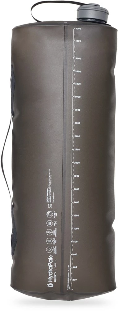 Go the distance with the high-capacity HydraPak Seeker 4L collapsible water container. Its flexible handle allows for easy pouring and carrying, and it easily fits in or lashes on to your pack.
