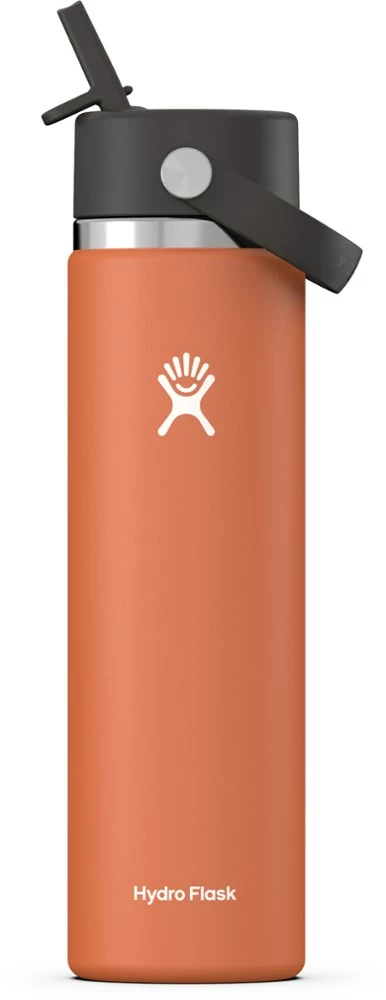 Stay hydrated all day with the 24 fl. oz. Hydro Flask Wide-Mouth vacuum water bottle with a Flex Straw cap. Leakproof and insulated, it keeps water cold from alpine starts to long past sunset.
