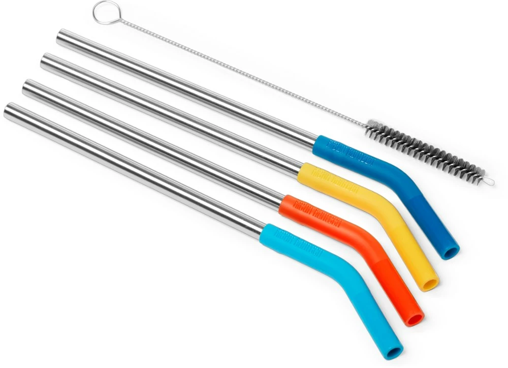 - Each of the 4 stainless-steel straws is topped with a food-grade silicone tip in a different color