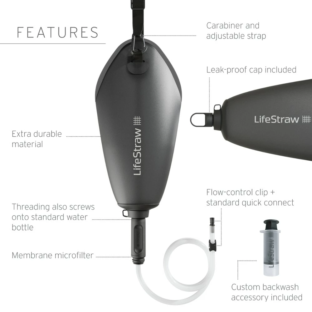 Ultralight, durable and fully leakproof, the LifeStraw Peak Gravity water filter system lets gravity do the work to make up to 3 liters of clean water while backpacking, camping or traveling in an RV.