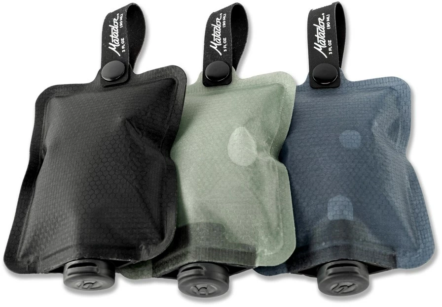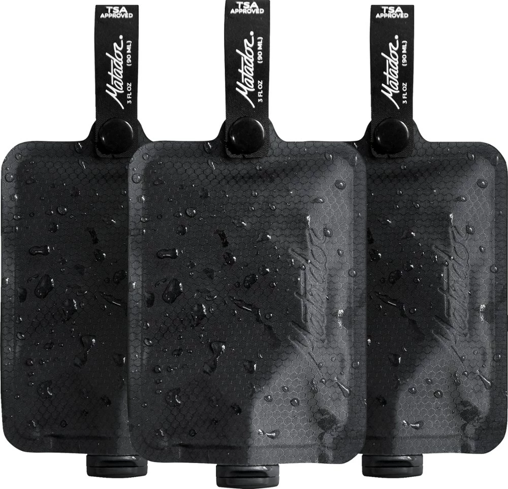 Made for minimalist travel and ultralight adventures, this package of 3 Matador FlatPak Toiletry bottles is up to 5 times lighter and 3.5 times more compact than traditional silicone travel bottles.