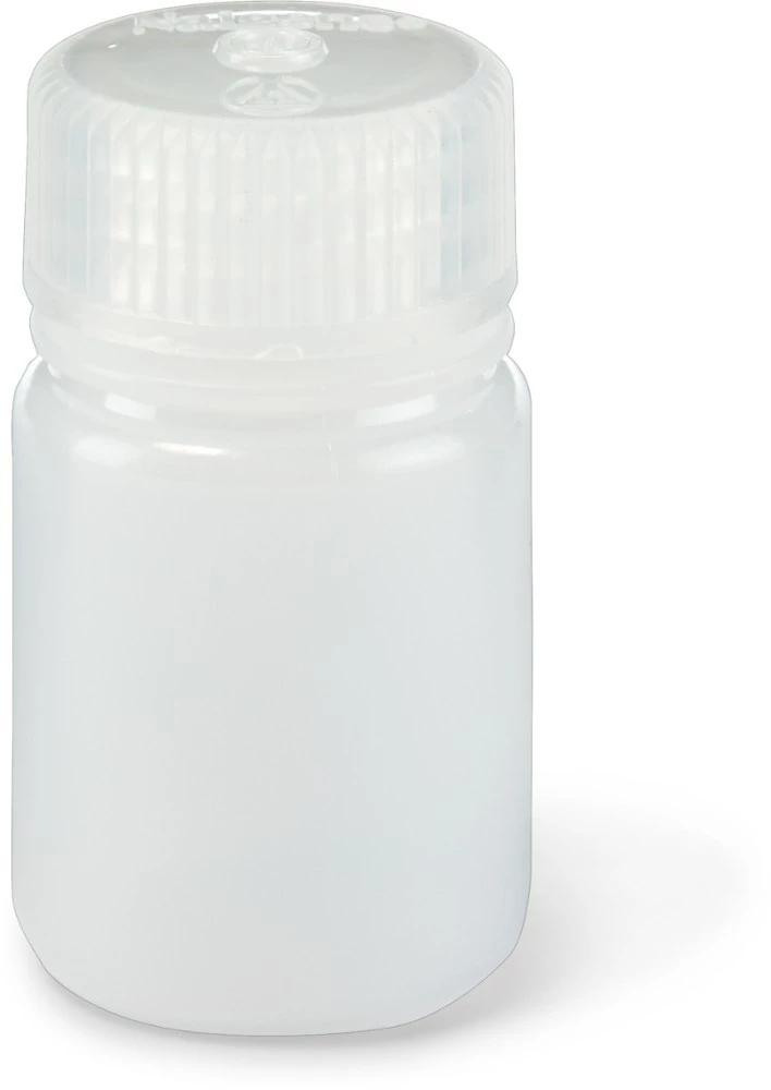 Small but tough, this 1 fl. oz. polyethylene bottle holds liquid soap, tablets, shampoo and more.