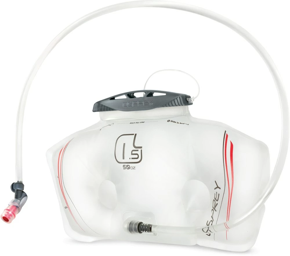 Stay hydrated on mountain bike rides, hikes or any other outdoor adventure with the 1.5-liter Osprey Hydraulics lumbar reservoir made to fit your Osprey Seral pack (sold separately).