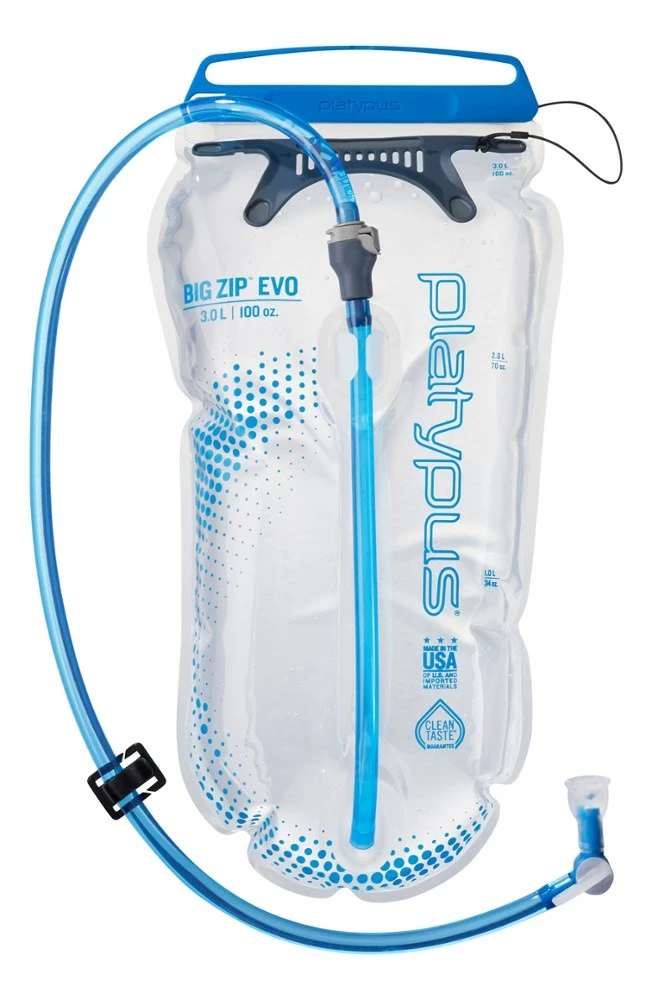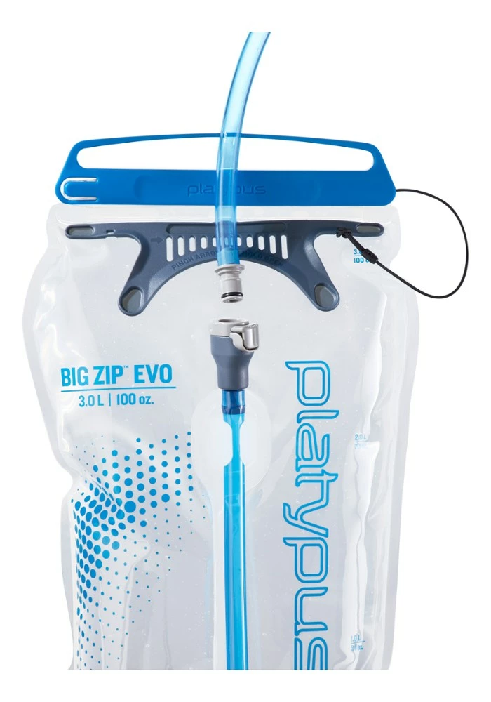 Perfect for long day hikes or backpacking trips, the Platypus Big Zip EVO 3L reservoir features a new, self-sealing bite valve and wide tubing for a 50% faster flow rate than the previous Big Zip LP.
