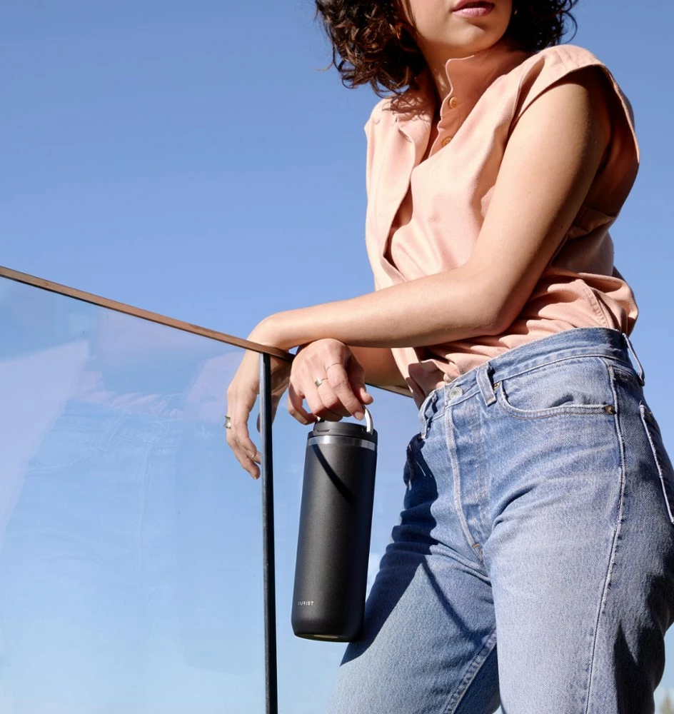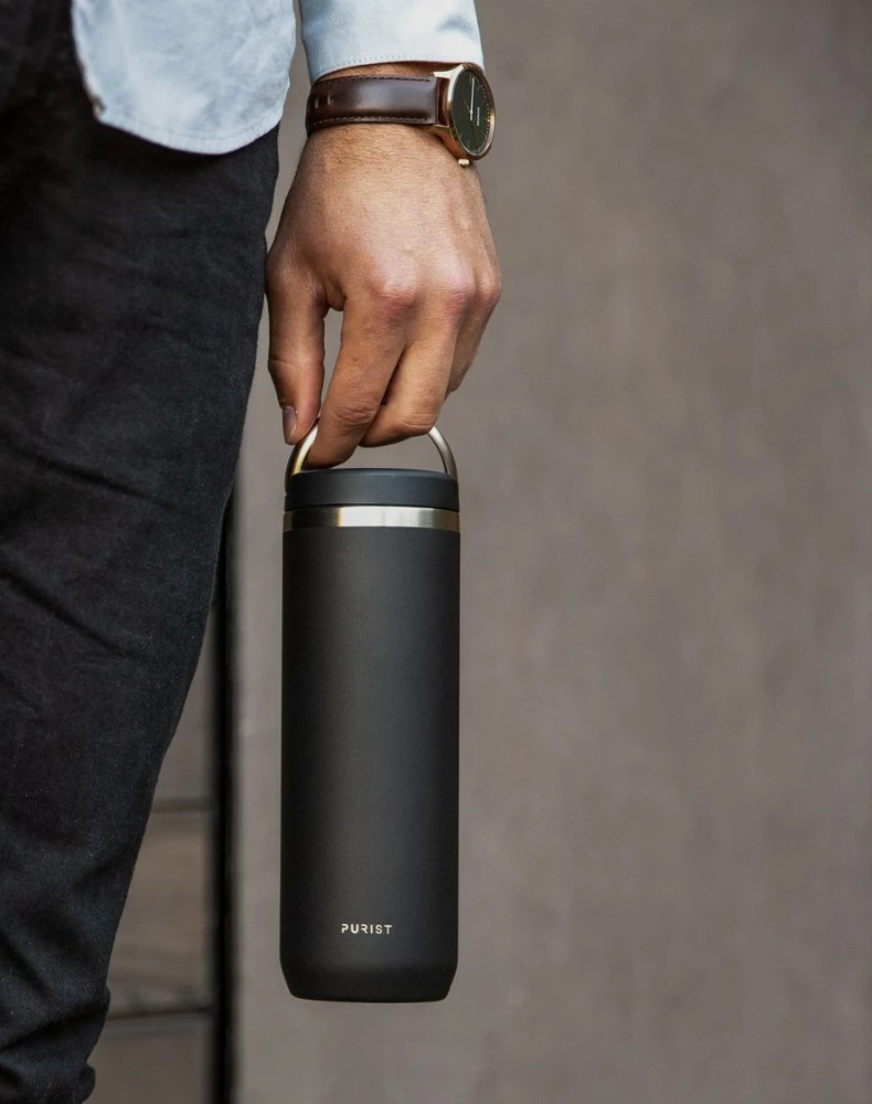 Say goodbye to that metallic tinge and hint of last week’s coffee. The 18 oz. Purist Mover Vacuum Water Bottle with Element top has an interior unbreakable glass finish to keep drinks tasting pure.