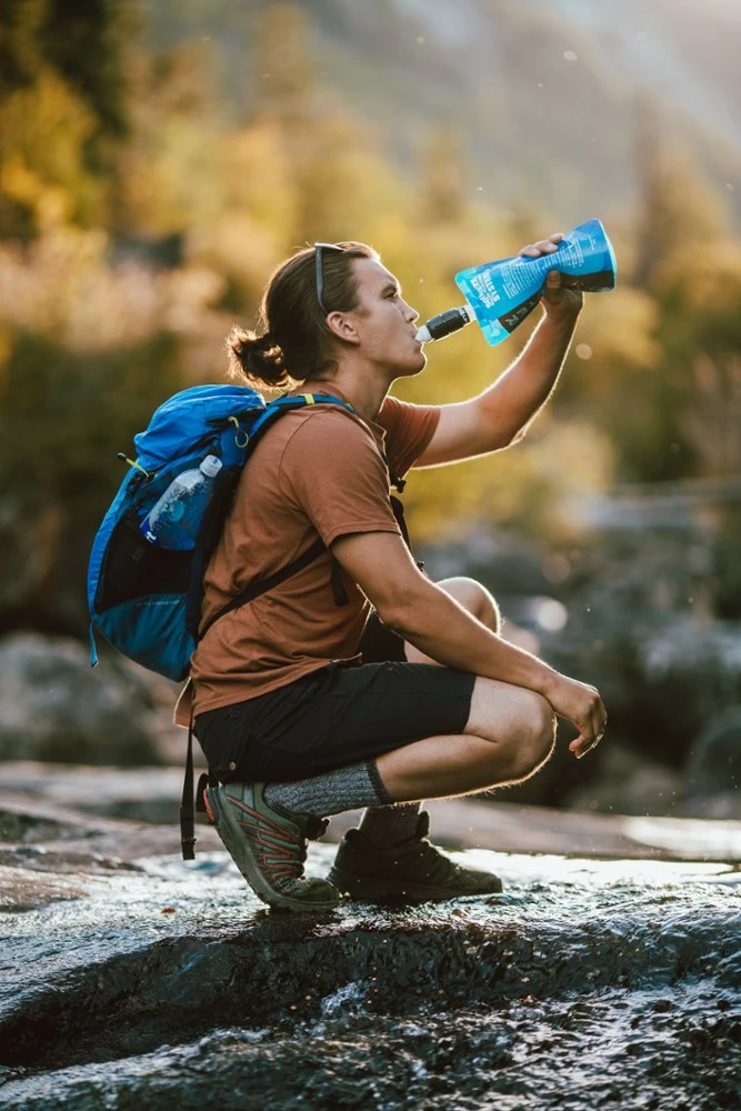 - Bring along additional squeeze pouches (sold separately) to store water and filter later if water sources are scarce