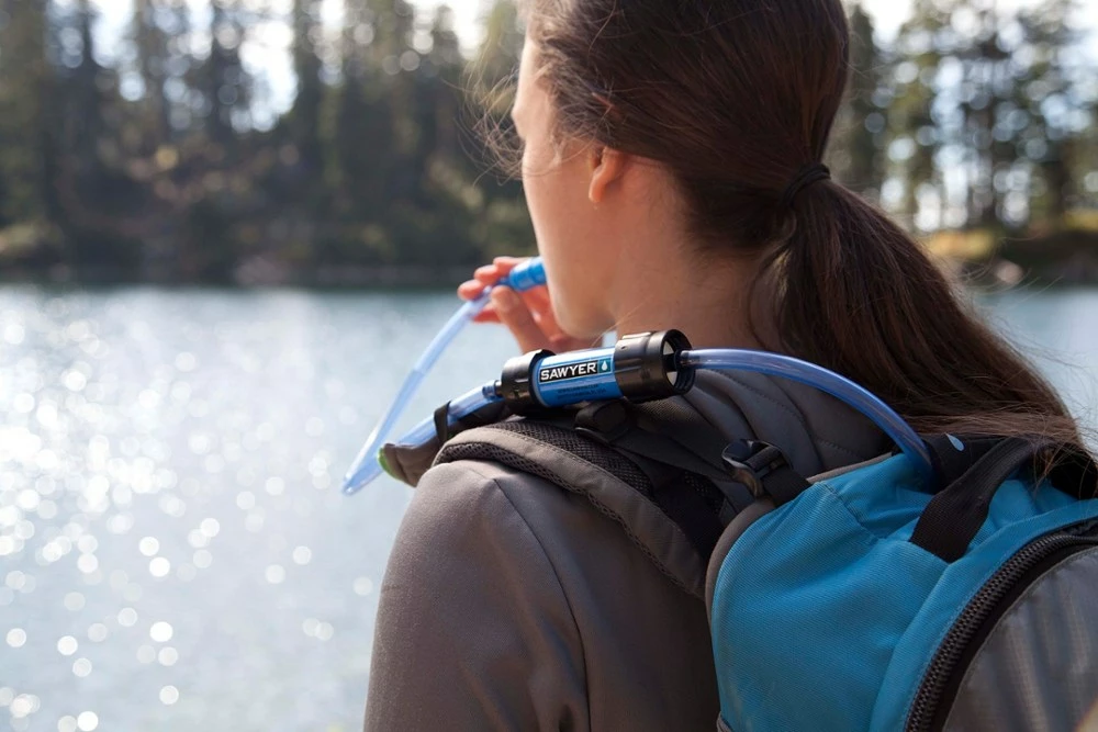 Weighing only 2 oz. and sized to fit in the palm of your hand, the Sawyer Mini water filter is one of the lightest, most compact filters available, and you can use it to drink straight from a stream.
