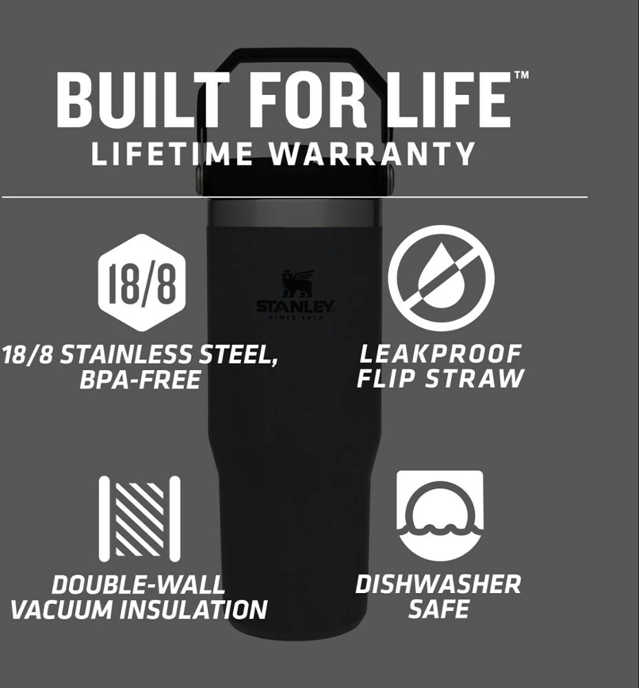 Ideal for car commutes or workouts at home, the 30 fl. oz. Stanley IceFlow Straw tumbler has a built-in flip straw and vacuum insulation to ensure that you always have crisp, cold hydration in hand.