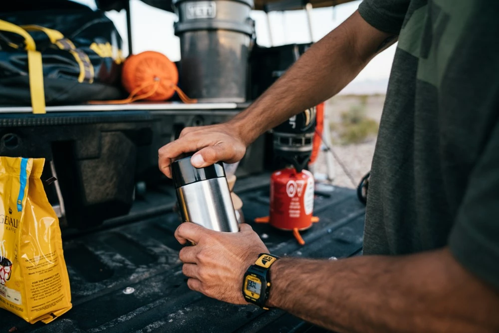 - With just a half twist and a click, it lets you sip from any side, making it an ideal cap for morning commutes, cold-weather campouts, night shifts and beyond